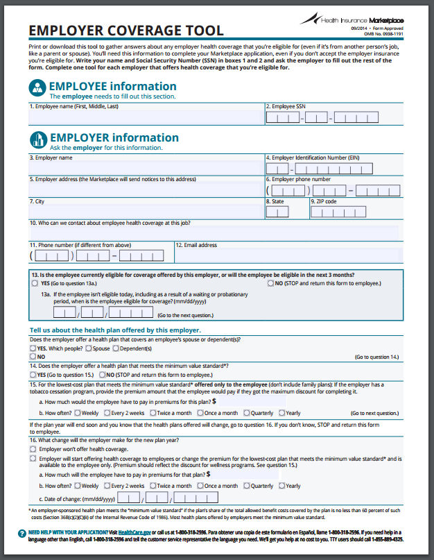 Take the employer coverage tool on the next page to the employer who offers . Print or download this form to collect information about employers that offer traditional health coverage to anyone on your. Save, download, print and share. To include this page when you send in your application, not the employer coverage tool. Fill out this form in advance: